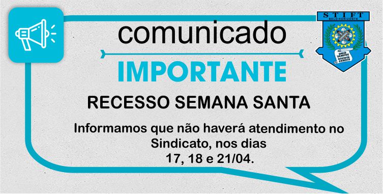 O Sindicato dos Trabalhadores Têxteis de Belo Horizonte e Região, vem informar que nos dias 17, 18 e 21 não haverá expediente na Entidade Sindical.